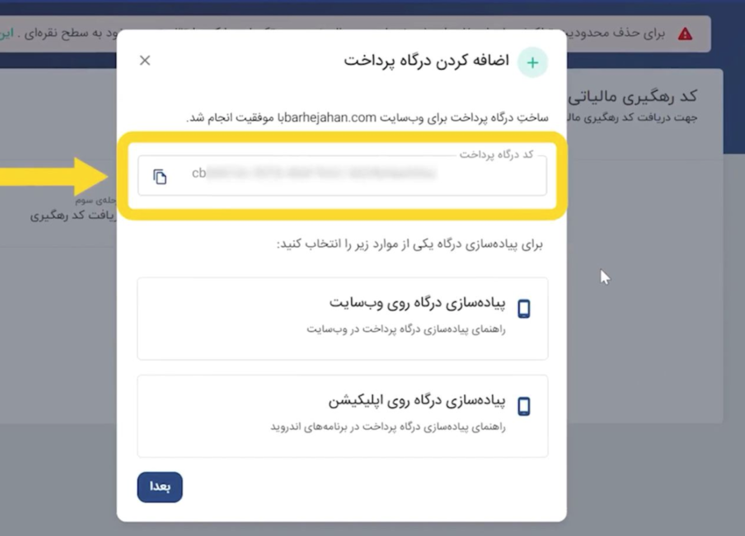- کد اختصاصی درگاه پرداخت زرینپال را برای ما ارسال کنید.